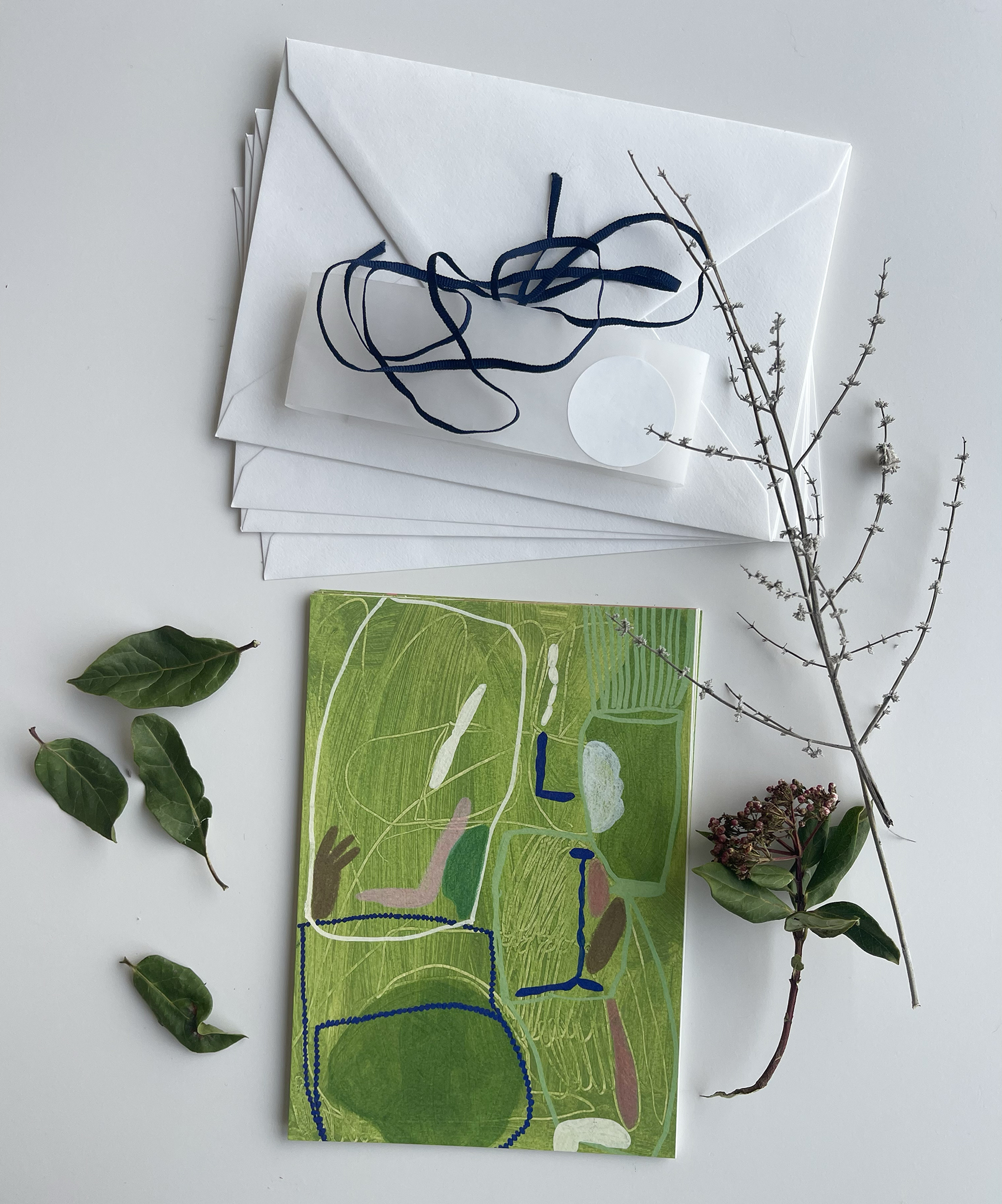 A set of 6 x A5 postcards printed on Tintoretto Gesso 300gsm card stock, with matching envelopes.