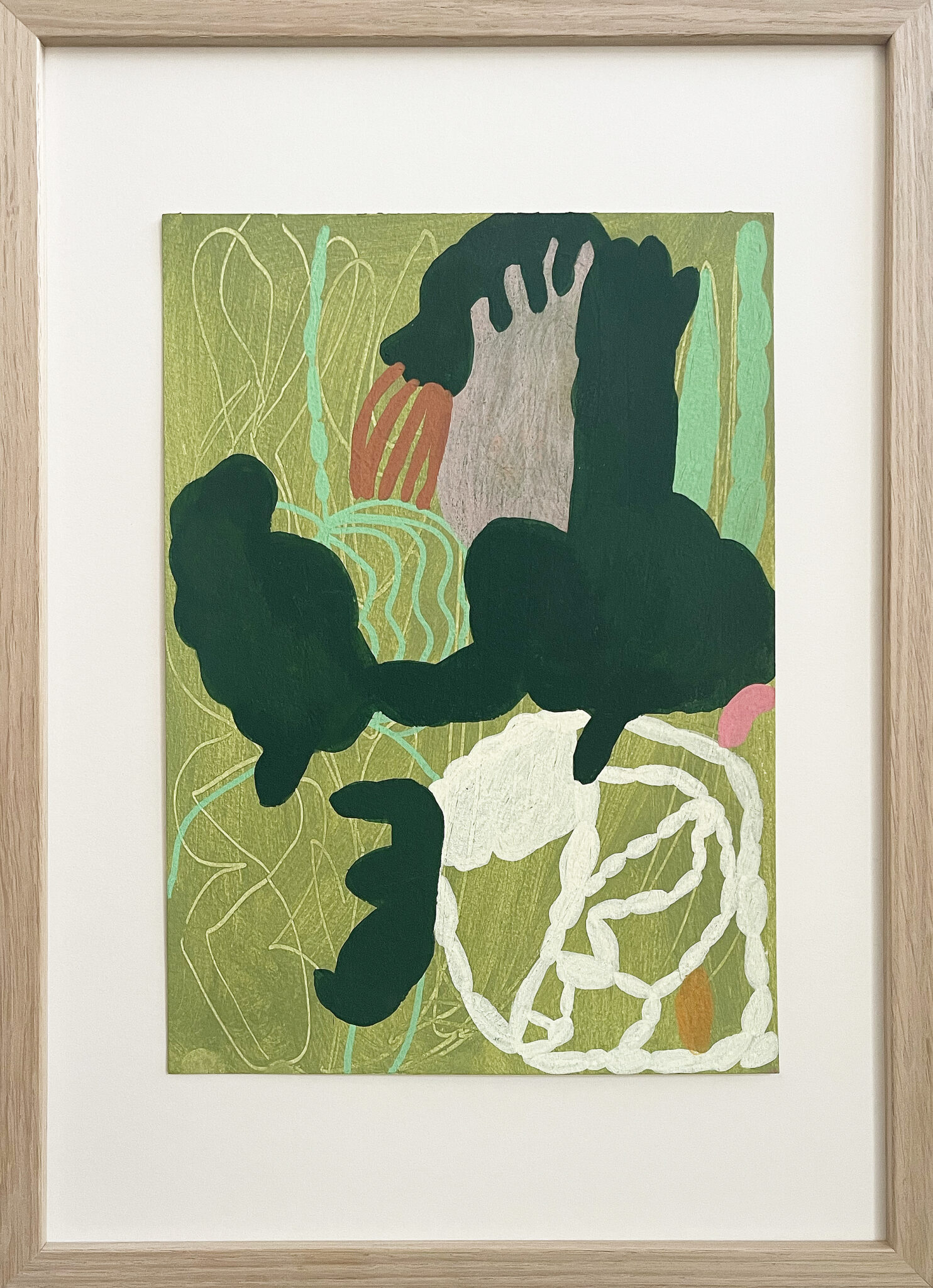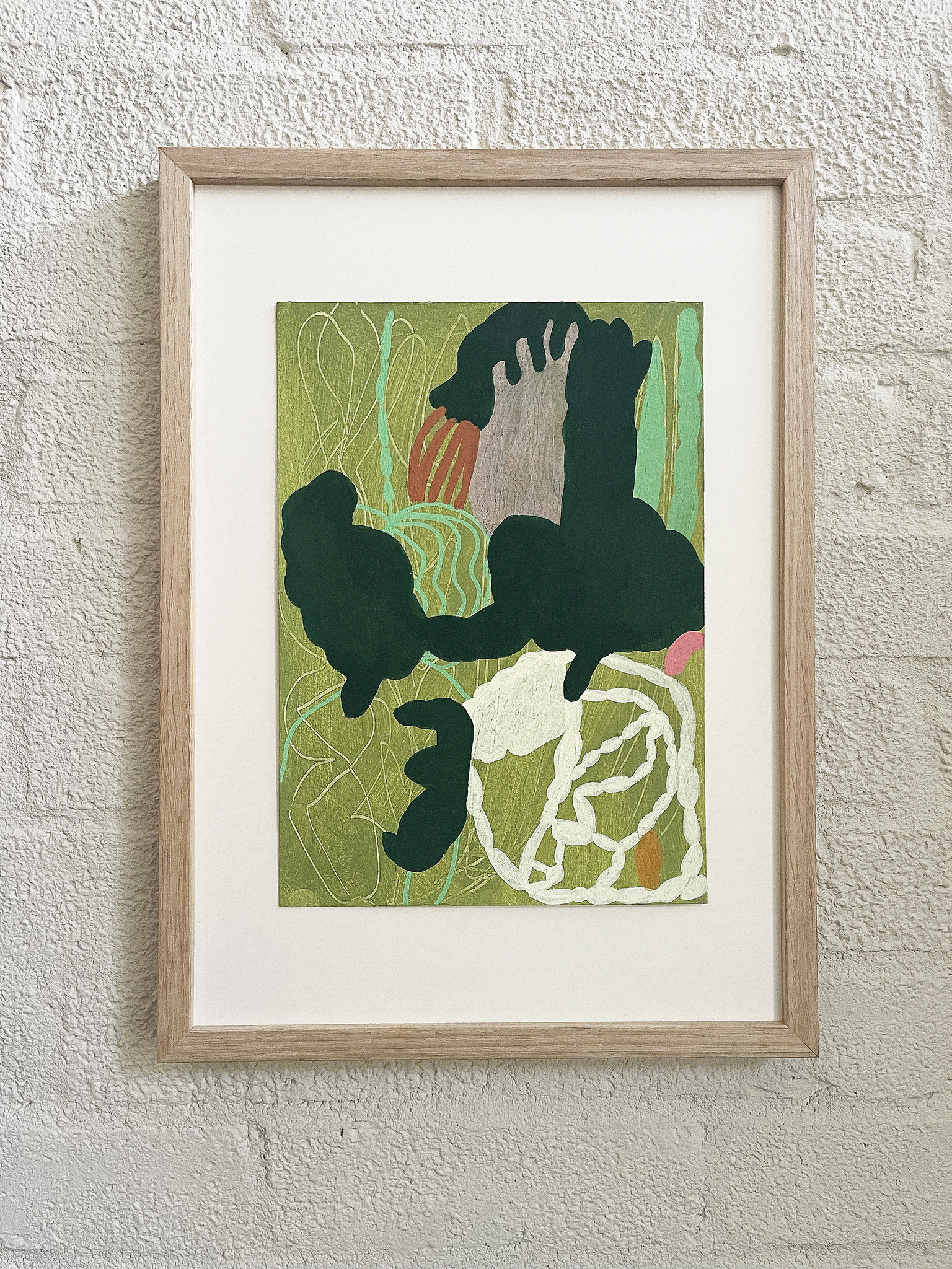 acrylic paint, pastel, pencil and sgraffito drawing on 300 gsm Langton Watercolour Paper.
